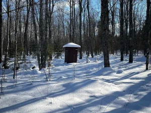 Among the outbuildings is a sauna, a true Northwoods luxury and a beloved tradition after long days in the woods. There are also wood sheds for storing firewood and supplies, as well as outhouses, reinforcing the authentic and practical camp setup. These structures support extended stays and make the property well-suited for groups of hunters, family retreats, or recreational gatherings.