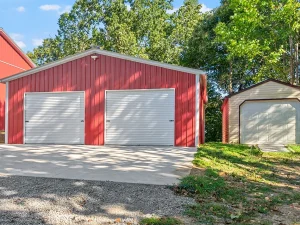 Beyond the main structure, the estate includes a detached 1,200-square-foot (30×40) workshop equipped with solar panels. Two 16×12-foot garage doors are large enough to accommodate an RV, making it ideal for travelers, hobbyists, or business owners needing substantial workspace. The solar panels contribute to energy efficiency and sustainability, reducing operational costs over time. Additionally, two more sheds equipped with solar panels provide further storage and functional space.