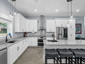 At the center of this extraordinary estate sits a stunning Barndominium, thoughtfully designed with high-end finishes and modern functionality. This home blends rustic charm with contemporary luxury, offering an open and accessible layout that prioritizes comfort and efficiency. The entire floor plan was designed with accessibility in mind, featuring ADA-compliant openings and a no-step entry configuration. This forward-thinking design ensures long-term usability and ease of movement throughout the home.