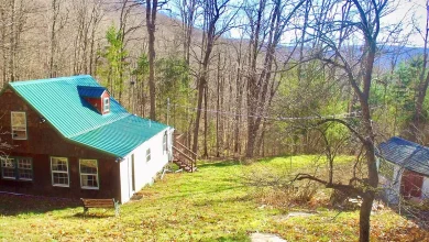 Winding back through the woods along a private drive, you’ll arrive at the 100-acre parcel, which features a charming and welcoming log cabin home positioned in an exceptionally scenic setting. Surrounded by mature trees and breathtaking wooded views, this cozy residence offers a rustic yet comfortable retreat from everyday life.