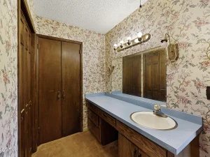 As you step inside, you are immediately welcomed by warm wood accents that flow throughout the home, adding character, charm, and a timeless country feel. The main level features three bedrooms and two full bathrooms, making it both functional and comfortable for families, guests, or anyone who values space and convenience. The layout is practical yet inviting, offering a natural flow between living areas while maintaining a cozy atmosphere.