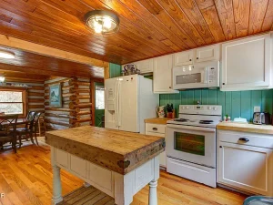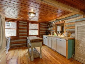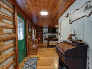 Across the parking area and tucked against the woods sits a beautifully crafted guest cottage built from vintage logs. This separate structure is a treasure—full of rustic character and ideal for extended family, guests, or nightly rental income.
