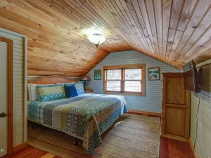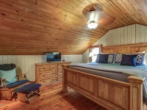 The second floor of the cabin offers two spacious king bedrooms, set on opposite sides of the level and separated by a central hallway. This arrangement provides additional privacy and makes the upstairs feel like a peaceful retreat away from the main living areas.