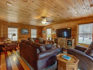 Tucked deep within the natural beauty of East Tennessee, this extraordinary Smoky Mountain retreat offers something that is increasingly rare—a true sense of privacy, serenity, and timeless rustic charm, combined with modern comfort and convenience. Set on 11+ private acres and overlooking a pristine spring-fed stocked pond, this one-of-a-kind log cabin estate near Seymour is more than a home—it is an escape, an experience, and a lifestyle. Whether you’re looking for a peaceful primary residence, a luxurious second home, or a high-demand investment property, this cabin and its companion guest cottage present an unparalleled opportunity.