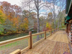 The cabin features a half-wrap deck that creates a seamless connection between indoor comfort and outdoor beauty. This sprawling outdoor area includes: