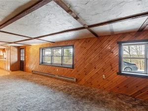 The ranch-style log cabin immediately captures attention with its classic country character. Log construction provides warmth, texture, and timeless appeal, creating a welcoming atmosphere from the moment you step inside. With three bedrooms, one full bathroom, a dedicated office, and two separate living rooms, the layout offers flexibility rarely found in similar properties.