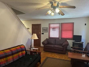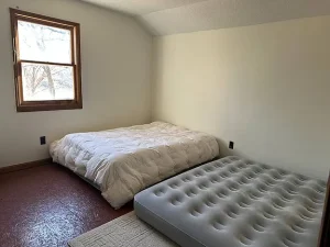 Upstairs, you’ll find two additional bedrooms, making the cabin suitable for guests, family members, or flexible use such as a home office or hobby room. The second-level sleeping areas add versatility and allow the home to comfortably accommodate multiple occupants without feeling crowded.