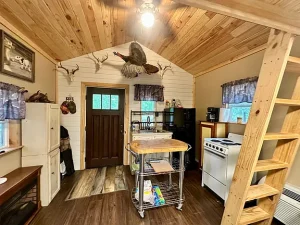 The cabin serves as an immediate and comfortable base for enjoying the land. Measuring approximately 325 ± square feet, the cabin is designed in a practical studio-style layout that maximizes functionality while maintaining a cozy and inviting atmosphere. It includes a full bathroom and is already connected to both power and water, offering a level of convenience that is often difficult to find in recreational properties. Whether used as a weekend getaway, a hunting cabin, or a lakeside retreat, the cabin provides everything needed for comfortable stays in a natural setting.