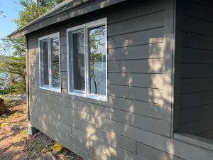 At the heart of the island sits a charming, classic one-room cabin, perched in a prime elevated position and oriented toward the northeast to take full advantage of the views toward Canada. This rustic yet welcoming structure adds a sense of warmth and history to the property. While it remains true to its simple, traditional roots, the cabin has been thoughtfully updated with new windows, fresh paint, and new siding, ensuring it is both comfortable and well protected from the elements. It is the perfect place to take shelter on a breezy afternoon, enjoy a quiet morning coffee while watching the water, or spend the night listening to the gentle sounds of waves and wind in the trees.