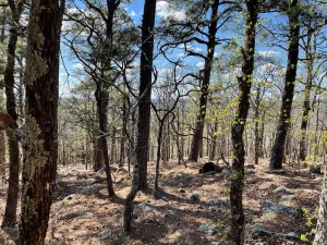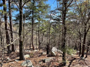 The land is richly wooded, featuring beautiful tall trees that enhance both privacy and visual appeal. Oak, pine, and cedar trees are scattered throughout the property, providing a healthy mix of hardwoods and evergreens. These mature trees create shade, wildlife habitat, and a timeless mountain atmosphere. Large natural boulders are also found across the land, adding character and a sense of permanence that complements the rugged terrain. Together, the trees and stone features give the property a dramatic yet peaceful feel that is hard to replicate.
