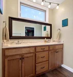 Each of the three bedrooms is generously sized, with features such as walk-in closets that add convenience and storage. The three full bathrooms are thoughtfully distributed throughout the home, ensuring comfort and accessibility for residents and guests alike. Laundry facilities are available on both the main and upper levels, adding flexibility and ease to daily routines.