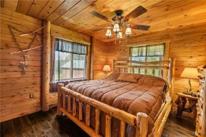 Step inside the home and you’ll immediately notice the quality craftsmanship and attention to detail. The kitchen serves as a centerpiece, featuring custom cabinetry, custom kitchen lighting, and granite countertops that combine beauty with durability. This space is designed for both everyday living and entertaining, offering ample room to prepare meals after a day in the woods or host friends and family for extended stays. The blend of rustic charm and upscale finishes creates a welcoming environment that feels both refined and relaxed.
