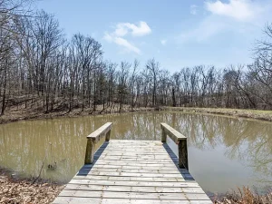 Outside, the private lake serves as the centerpiece of the property. This tranquil water feature provides opportunities for fishing, relaxation, or simply enjoying the peaceful surroundings. Being located on waterfront land significantly enhances the value and appeal of the property, making it especially attractive for buyers seeking a nature-focused lifestyle.