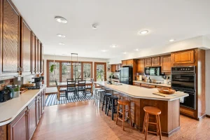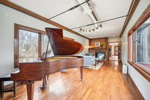 Beyond the interior, the property’s outdoor features elevate it even further. The five-acre lot includes wooded areas, a ravine setting, and direct water frontage along a creek or stream. This natural landscape not only enhances privacy but also creates opportunities for outdoor recreation. You can step outside and launch a kayak directly from your own property, explore the surrounding terrain, or simply relax and take in the peaceful scenery.