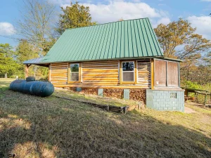 At the heart of the property is a two-bedroom, two-bath log cabin offering approximately 900 square feet of living space. True log cabins are increasingly rare in East Texas, and this home’s distinctive construction gives it a warmth and character that cannot be replicated with modern materials.