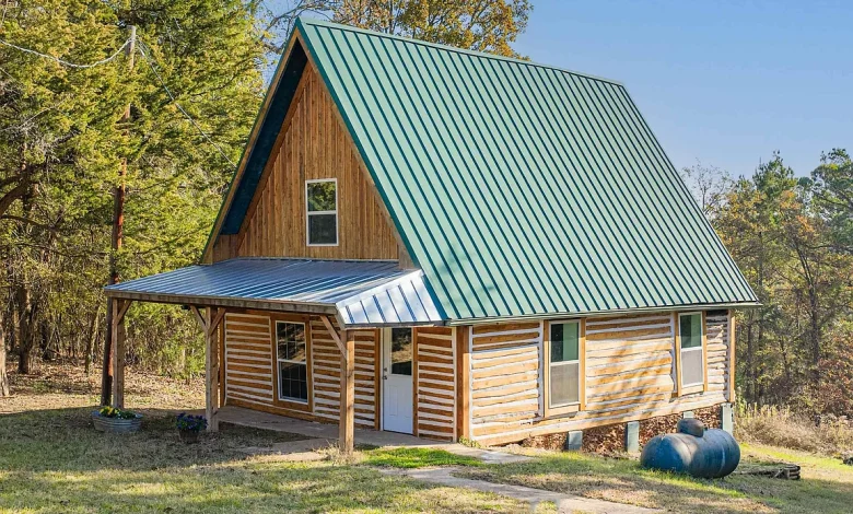 The exterior showcases classic log cabin styling paired with a durable metal roof, offering both visual appeal and long-term durability. A charming front porch invites you to slow down, sit back, and enjoy the peaceful surroundings—whether that’s sipping morning coffee or watching the sunset in the evening.