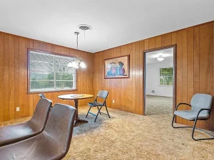 At the heart of the estate sits a well-built 2,158-square-foot brick ranch home constructed in 1982. Designed with comfort and functionality in mind, the home features three spacious bedrooms and two full bathrooms, all arranged conveniently on one level. Its classic ranch-style layout provides ease of living and accessibility, while the solid brick exterior and slab foundation offer durability and timeless appeal.