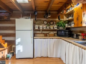 This cabin is the real deal—crafted with dovetailed timbers and traditional chinking, showcasing craftsmanship that reflects classic log cabin construction. These details not only add to the cabin’s visual appeal but also speak to its durability and timeless character.