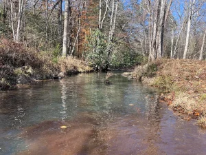 One of the most appealing features of the property is its elevated position overlooking Clear Creek. The sound and sight of the creek add to the peaceful atmosphere, creating a relaxing backdrop that enhances the sense of escape from everyday life. Clear Creek not only adds beauty to the land but also supports wildlife, making this property especially attractive to nature lovers and hunters. Deer, turkey, and other native wildlife are common in the area, offering excellent opportunities for hunting or wildlife observation.