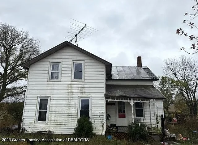 The farmhouse features two bedrooms and one bathroom, arranged across a traditional two-story layout that reflects the simplicity and charm of rural architecture. While the home is in need of updates and repairs, its structure offers a foundation for creativity and customization. With thoughtful renovation, this farmhouse could be transformed into a warm and inviting residence that blends historic character with modern comfort.